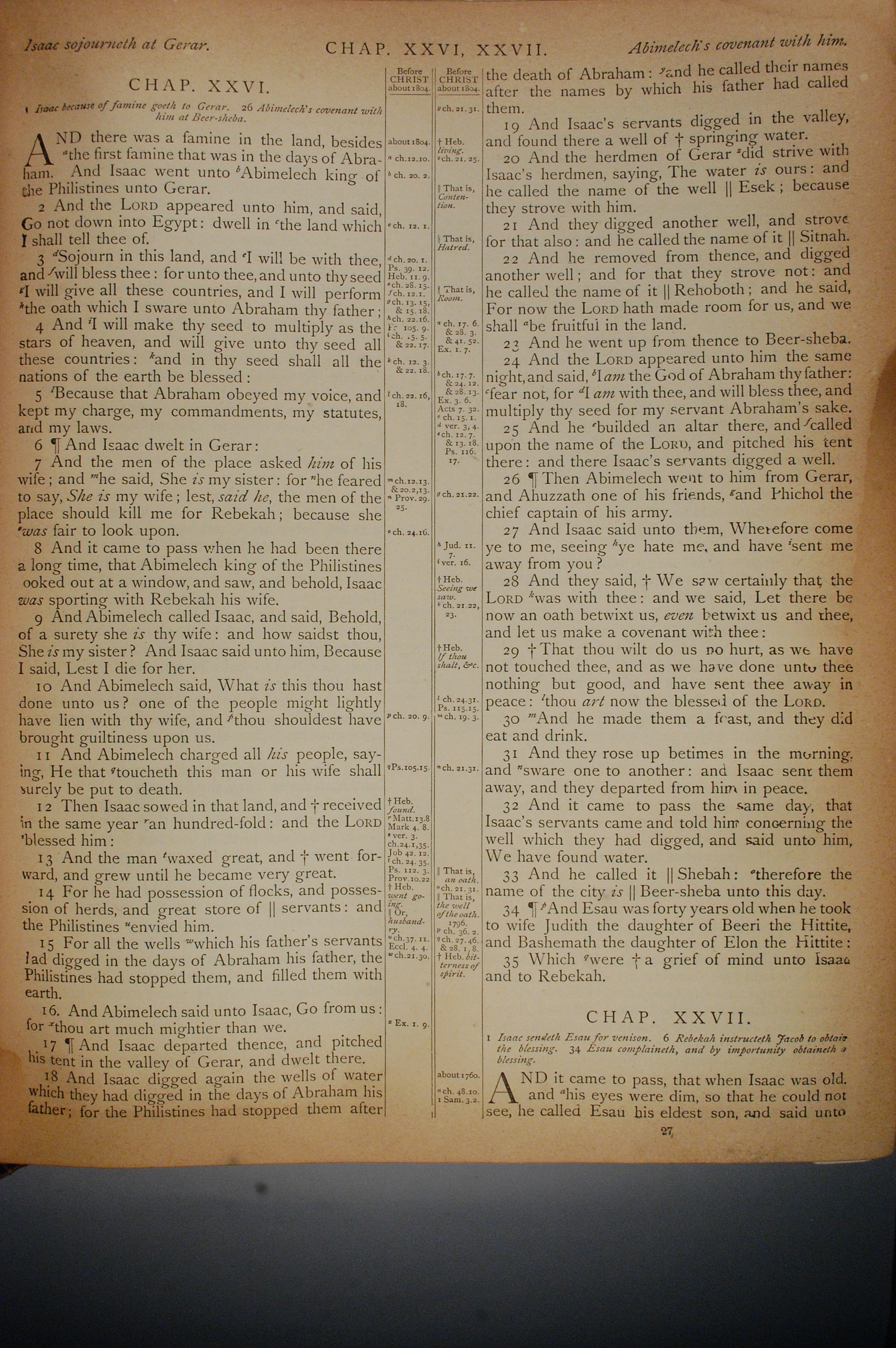1884年The Holy Bible: Old and New Testaments 创世记 26 章 1 节到 27 章 1 节