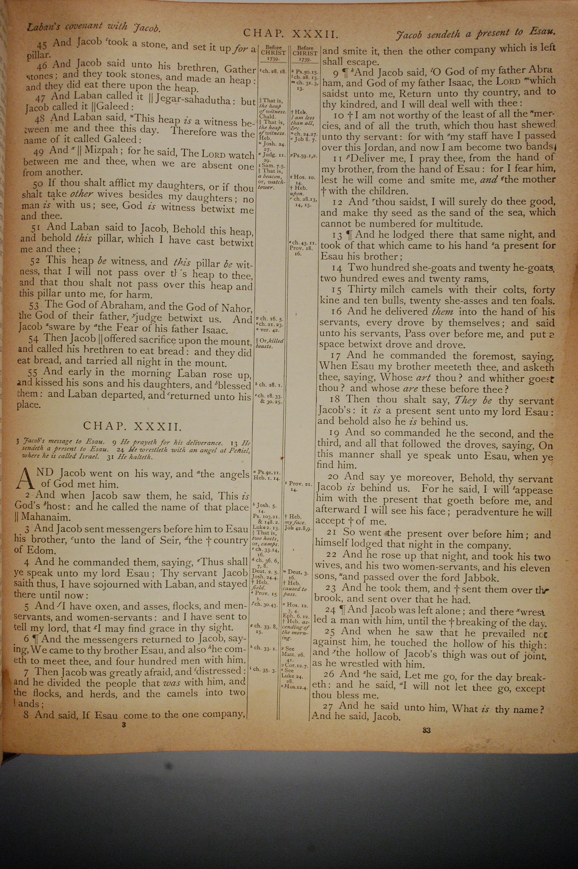 1884年The Holy Bible: Old and New Testaments 创世记 31 章 45 节到 32 章 27 节