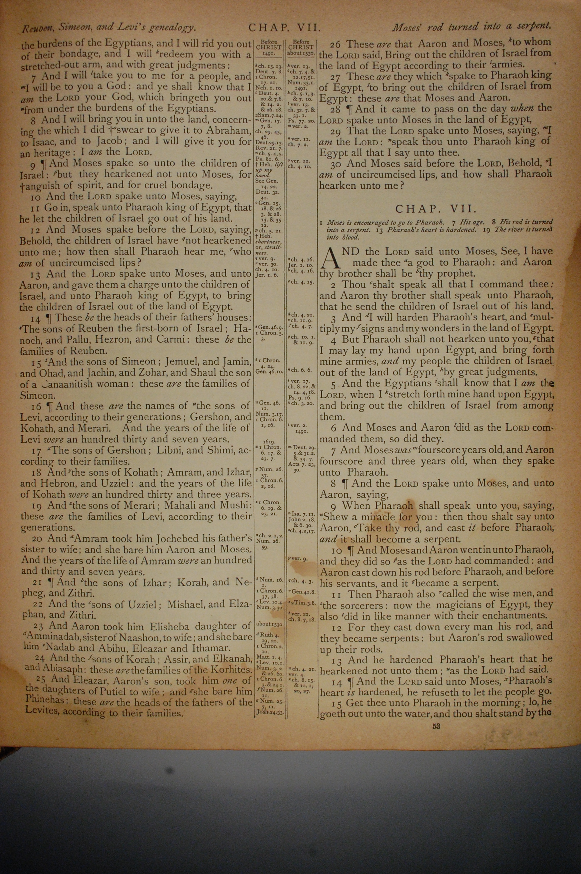 1884年The Holy Bible: Old and New Testaments 出埃及记 6 章 7 节到 7 章 15 节