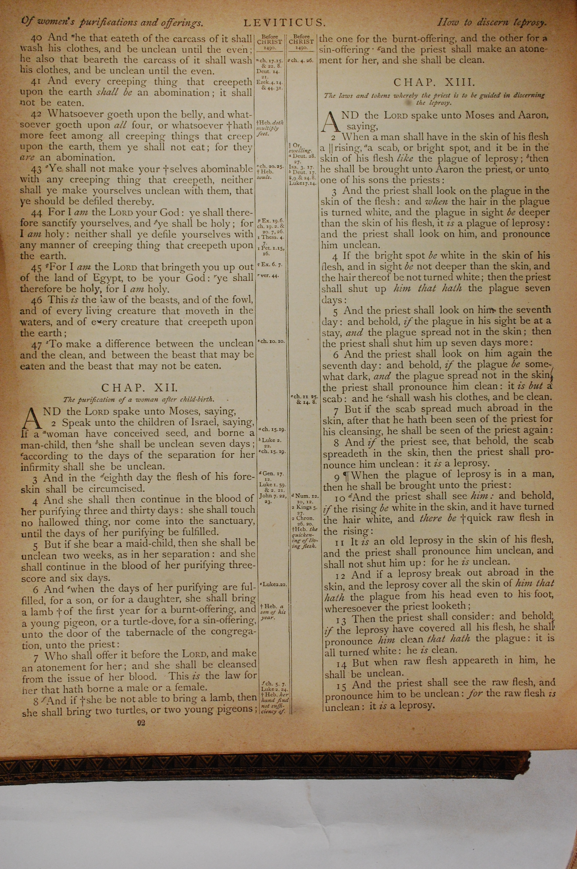 1884年The Holy Bible: Old and New Testaments 利未记 11 章 40 节到 13 章 15 节
