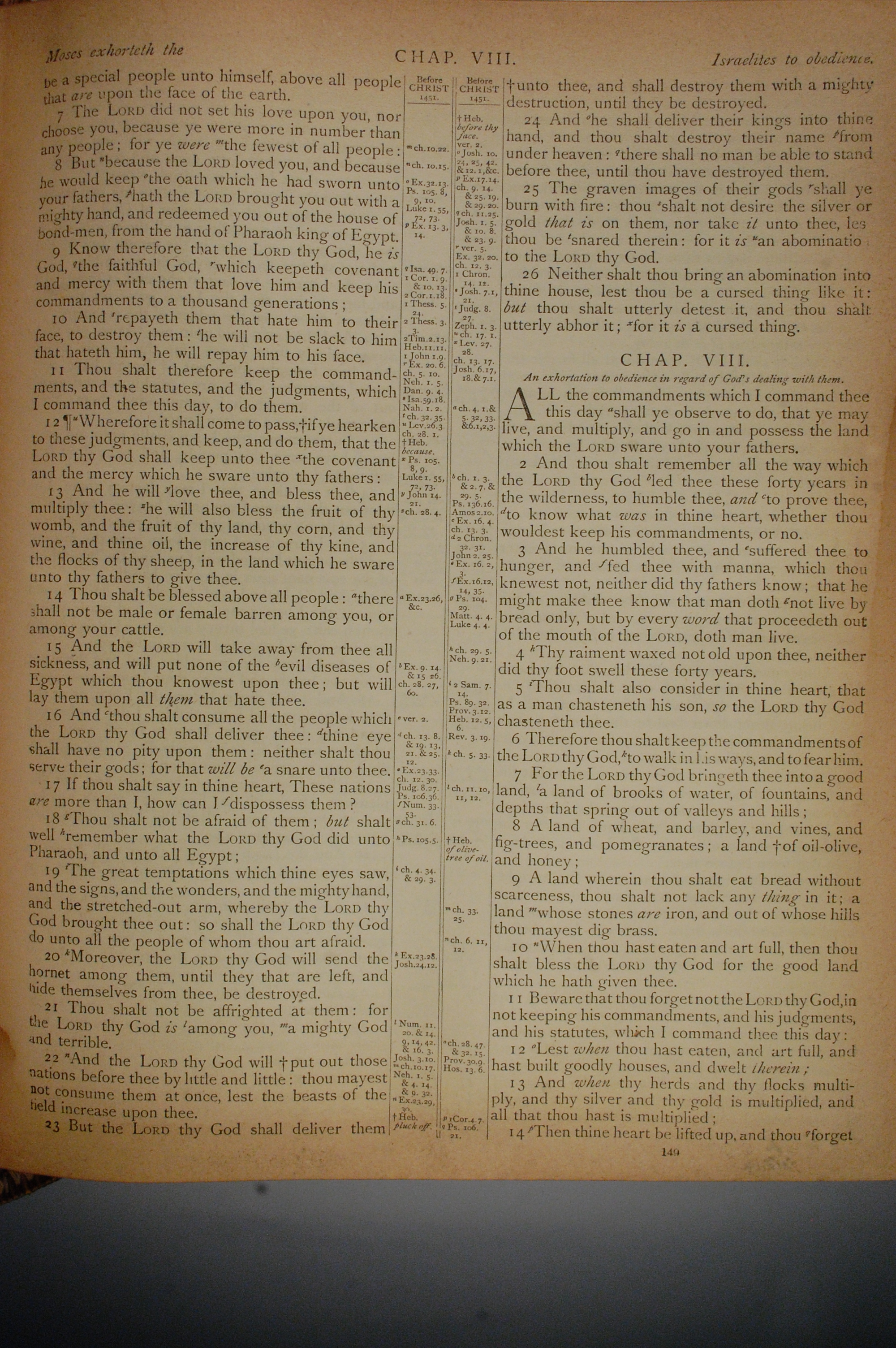 1884年The Holy Bible: Old and New Testaments 申命记 7 章 7 节到 8 章 14 节