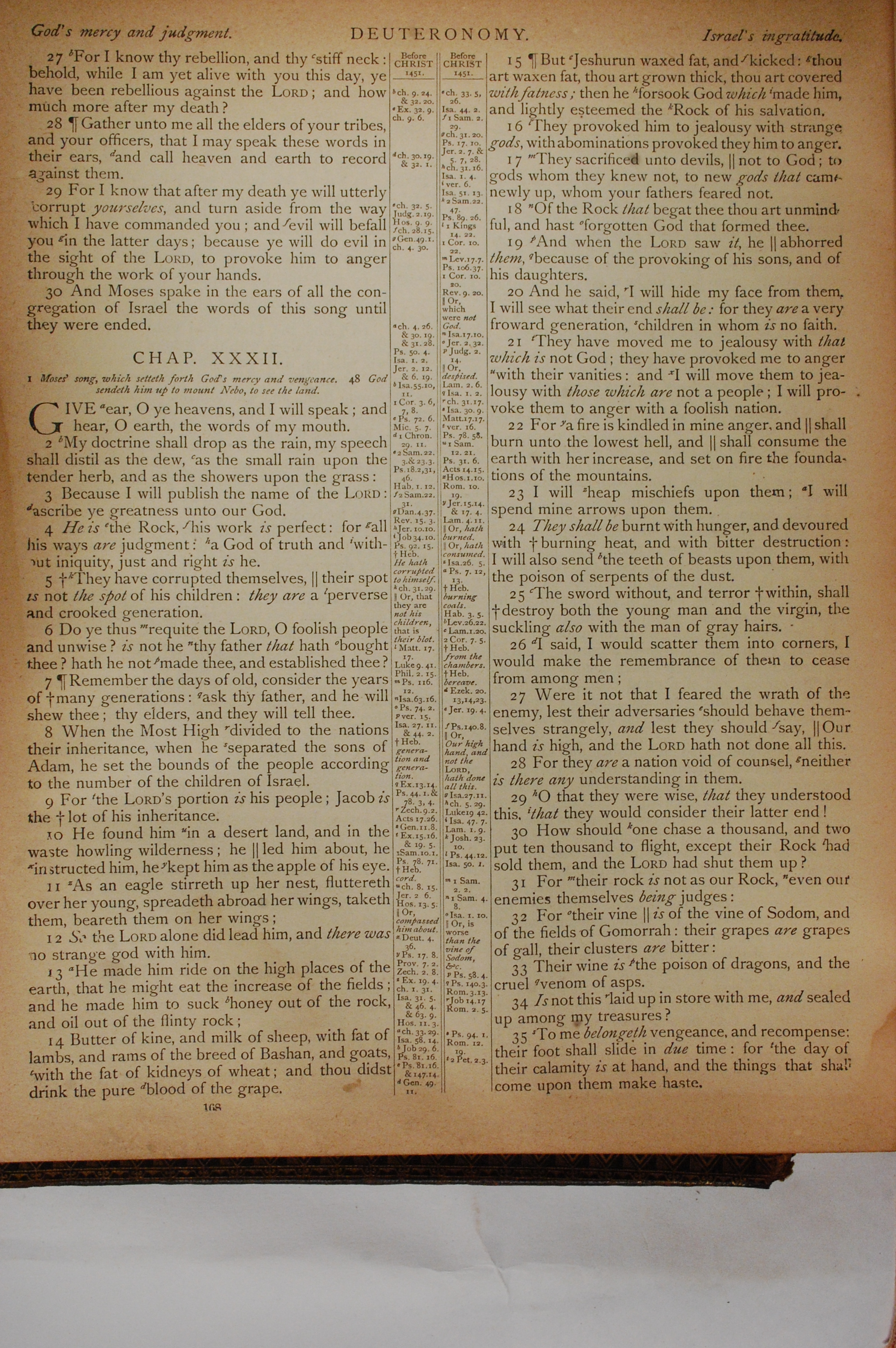 1884年The Holy Bible: Old and New Testaments 申命记 31 章 27 节到 32 章 35 节