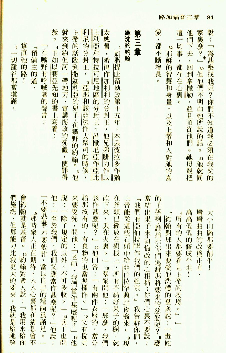 1976年圣经新译本新约 路加福音 2 章 50 节到 3 章 16 节