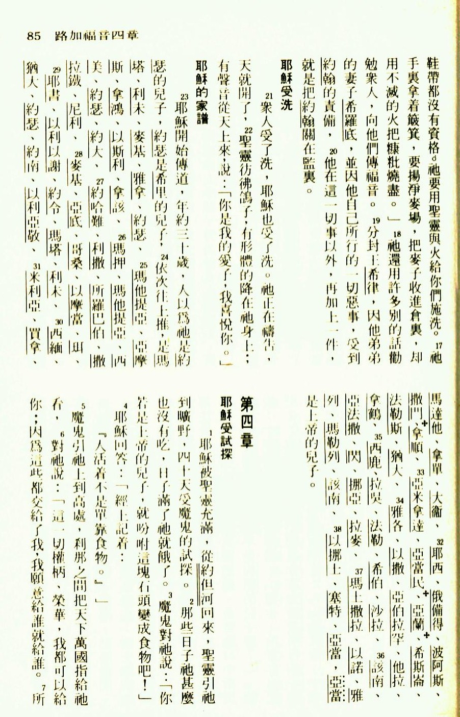 1976年圣经新译本新约 路加福音 3 章 17 节到 4 章 7 节
