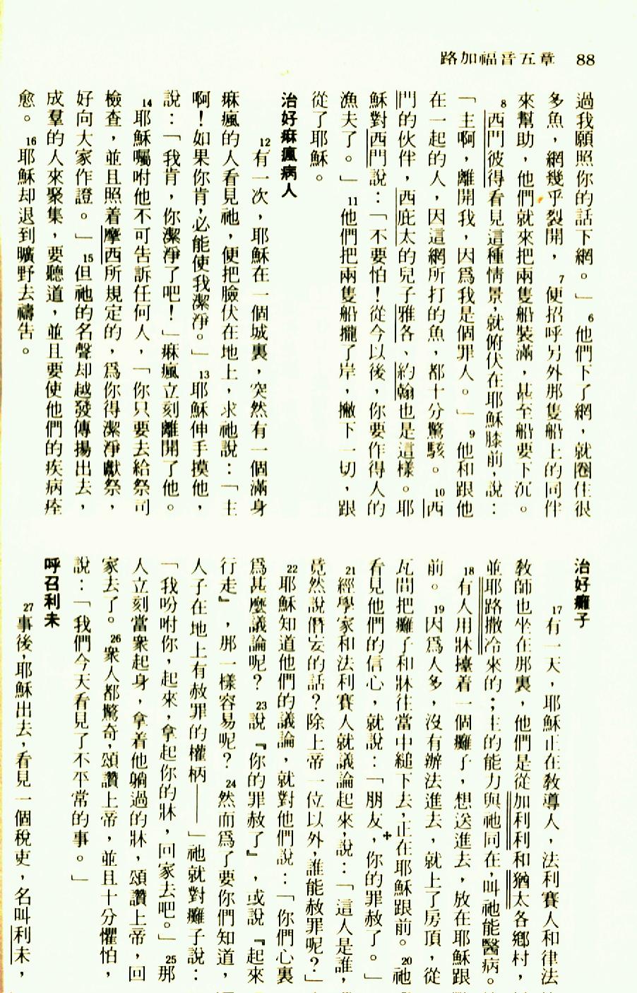 1976年圣经新译本新约 路加福音 5 章 6 节到 5 章 27 节