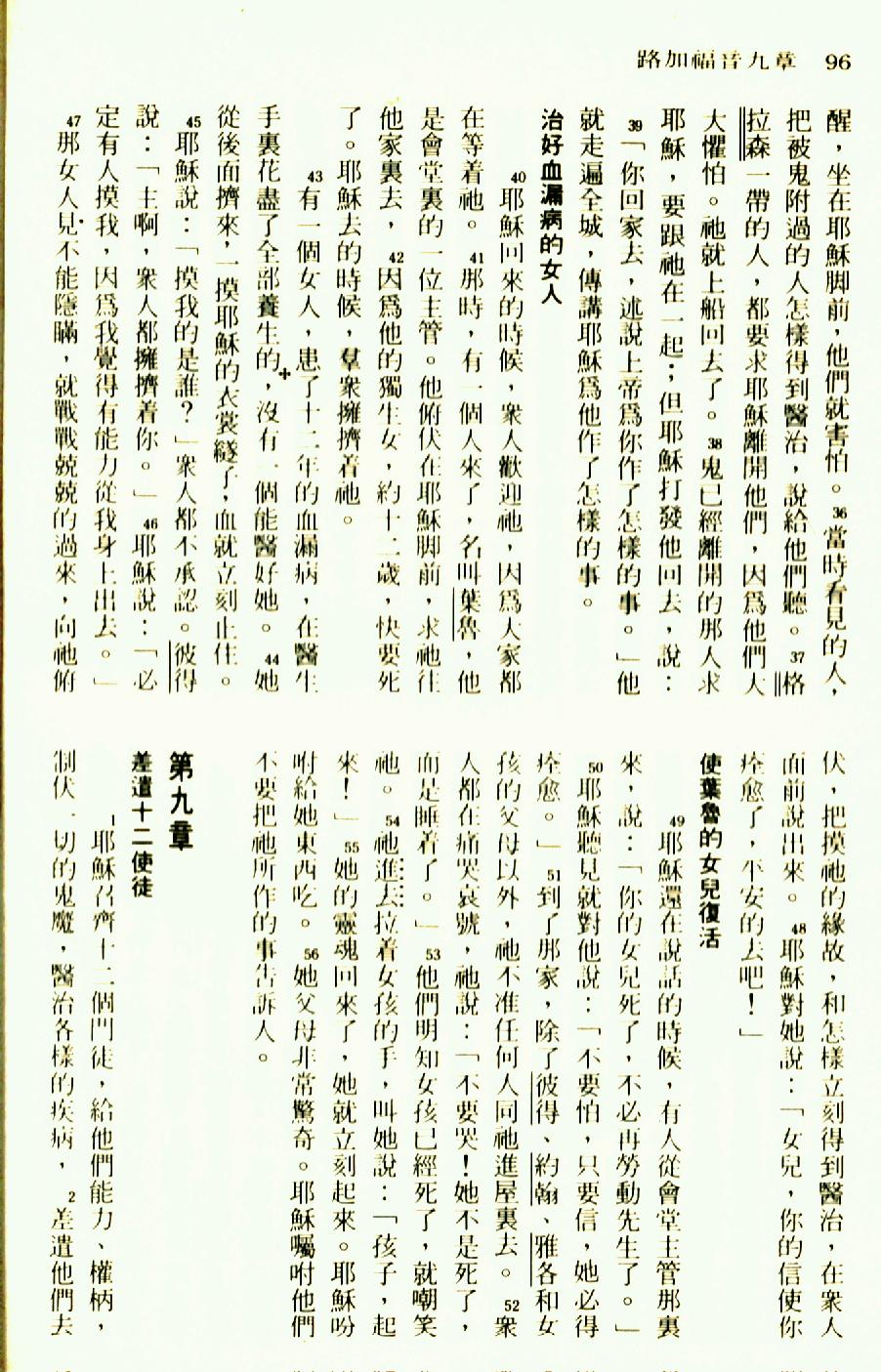 1976年圣经新译本新约 路加福音 8 章 36 节到 9 章 2 节