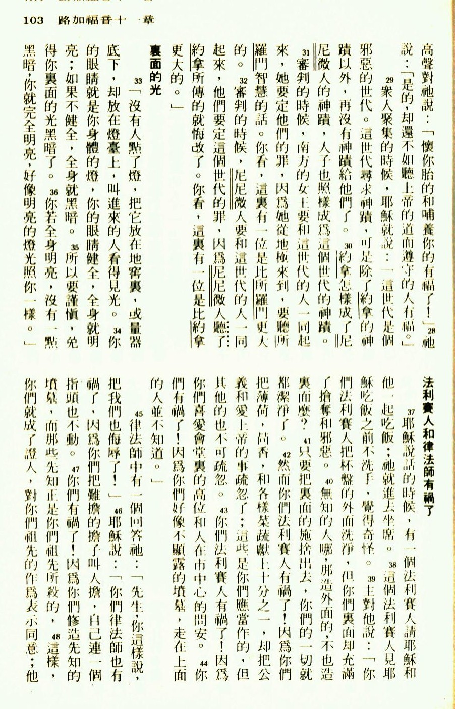 1976年圣经新译本新约 路加福音 11 章 28 节到 11 章 48 节