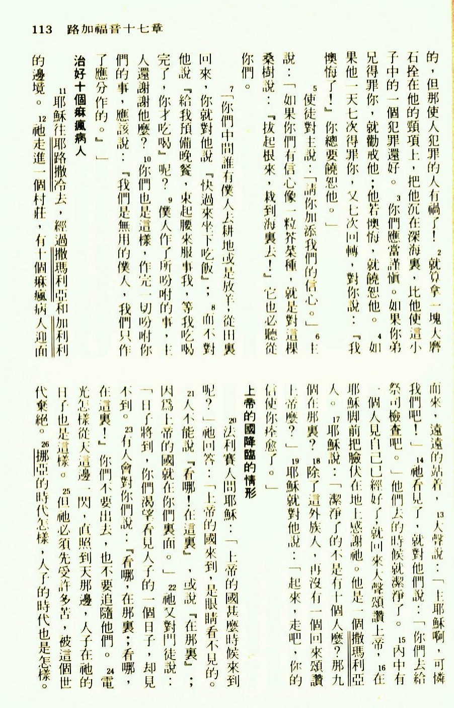 1976年圣经新译本新约 路加福音 17 章 2 节到 17 章 26 节