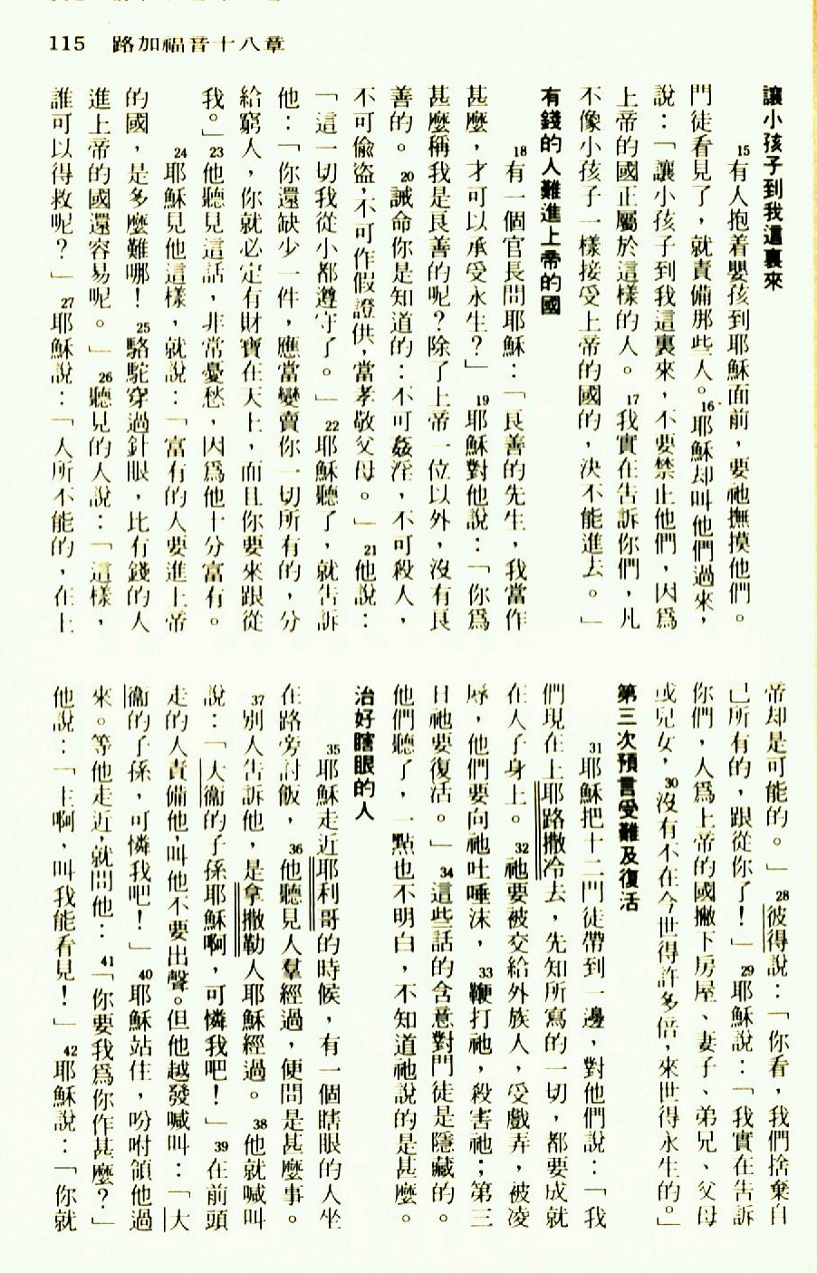 1976年圣经新译本新约 路加福音 18 章 15 节到 18 章 42 节