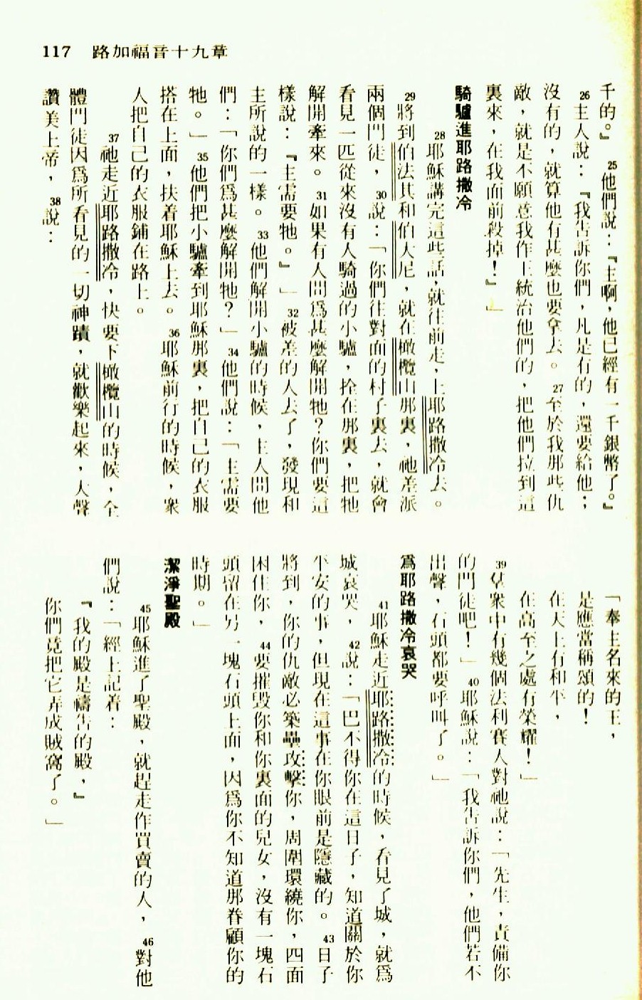 1976年圣经新译本新约 路加福音 19 章 25 节到 19 章 46 节