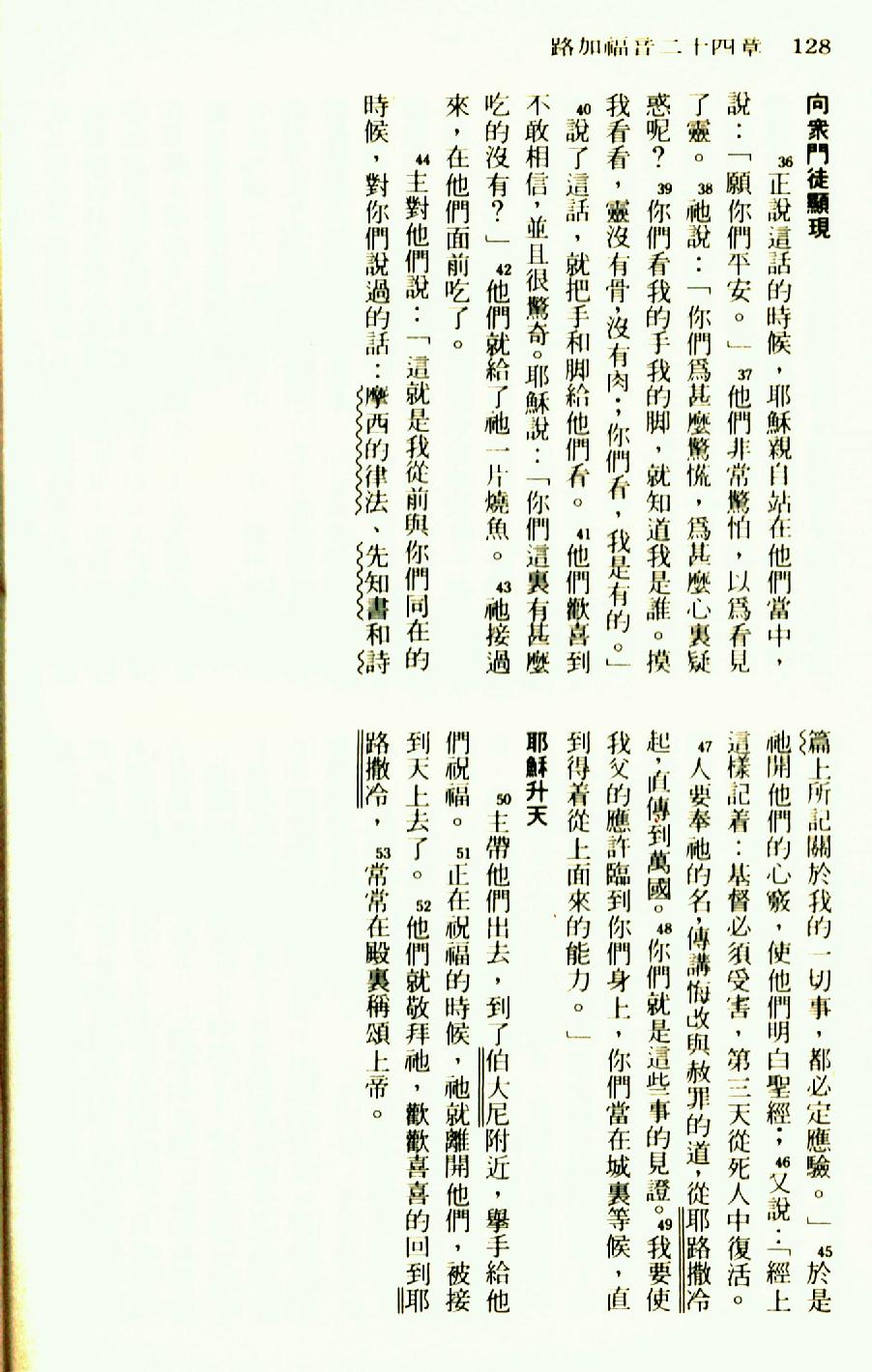 1976年圣经新译本新约 路加福音 24 章 36 节到 24 章 53 节