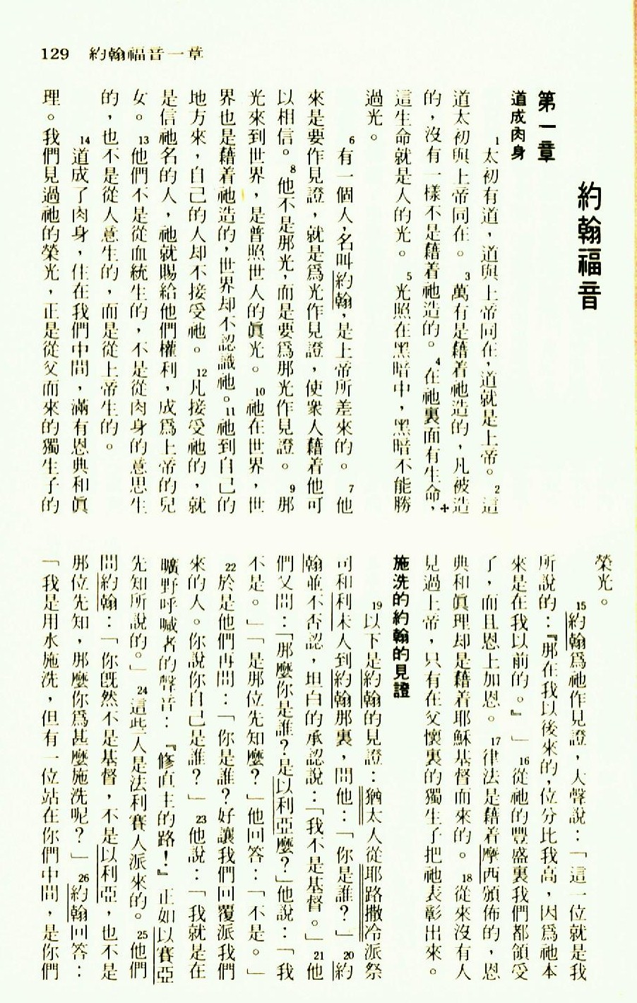 1976年圣经新译本新约 约翰福音 1 章 1 节到 1 章 26 节
