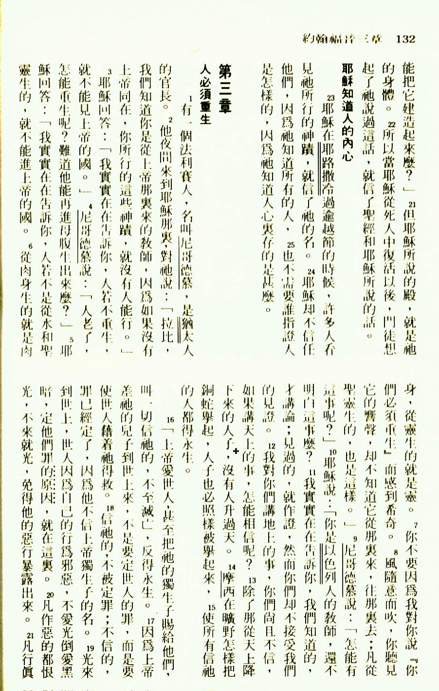 1976年圣经新译本新约 约翰福音 2 章 21 节到 3 章 21 节
