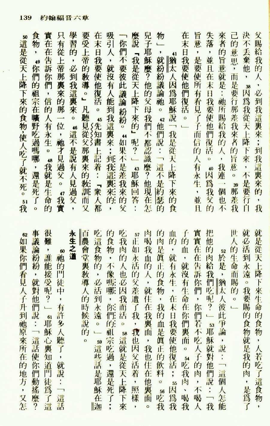 1976年圣经新译本新约 约翰福音 6 章 38 节到 6 章 62 节