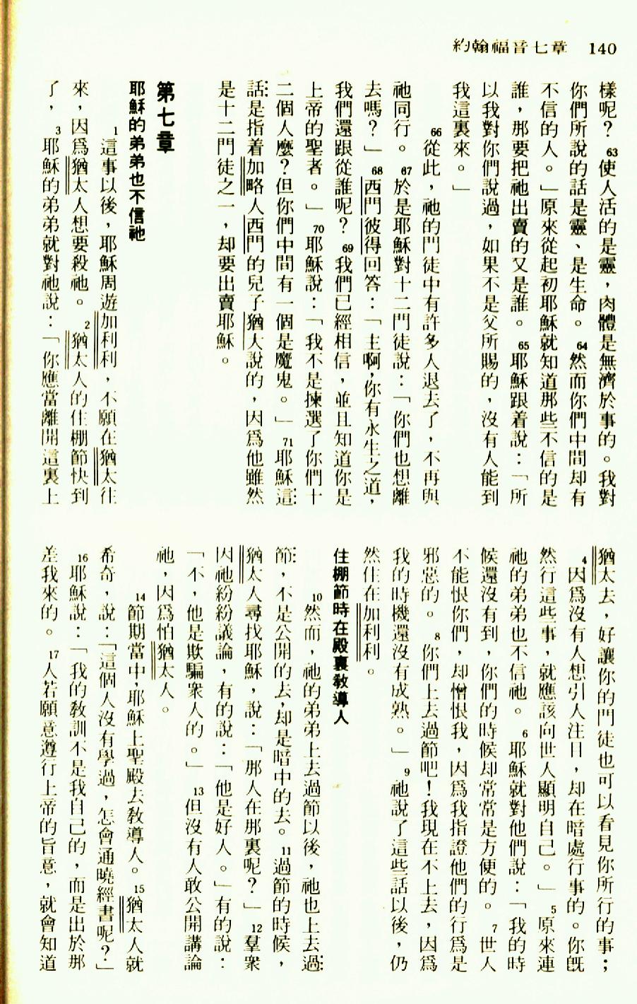 1976年圣经新译本新约 约翰福音 6 章 63 节到 7 章 17 节
