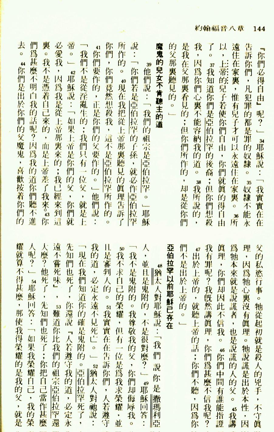 1976年圣经新译本新约 约翰福音 8 章 34 节到 8 章 54 节