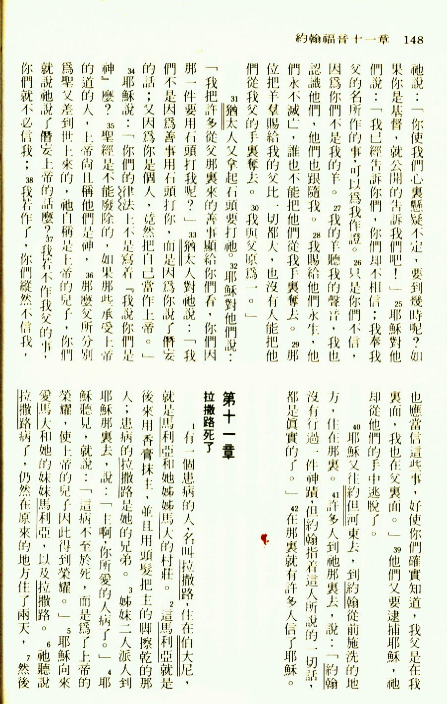 1976年圣经新译本新约 约翰福音 10 章 25 节到 11 章 7 节