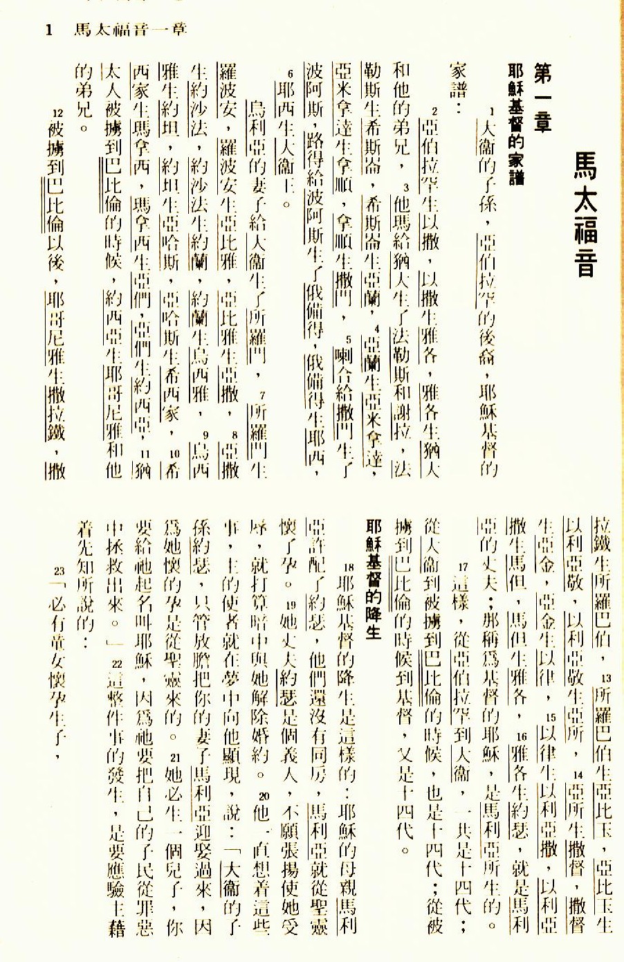 1976年圣经新译本新约 马太福音 1 章 1 节到 1 章 23 节
