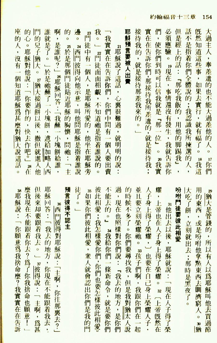 1976年圣经新译本新约 约翰福音 13 章 17 节到 13 章 38 节