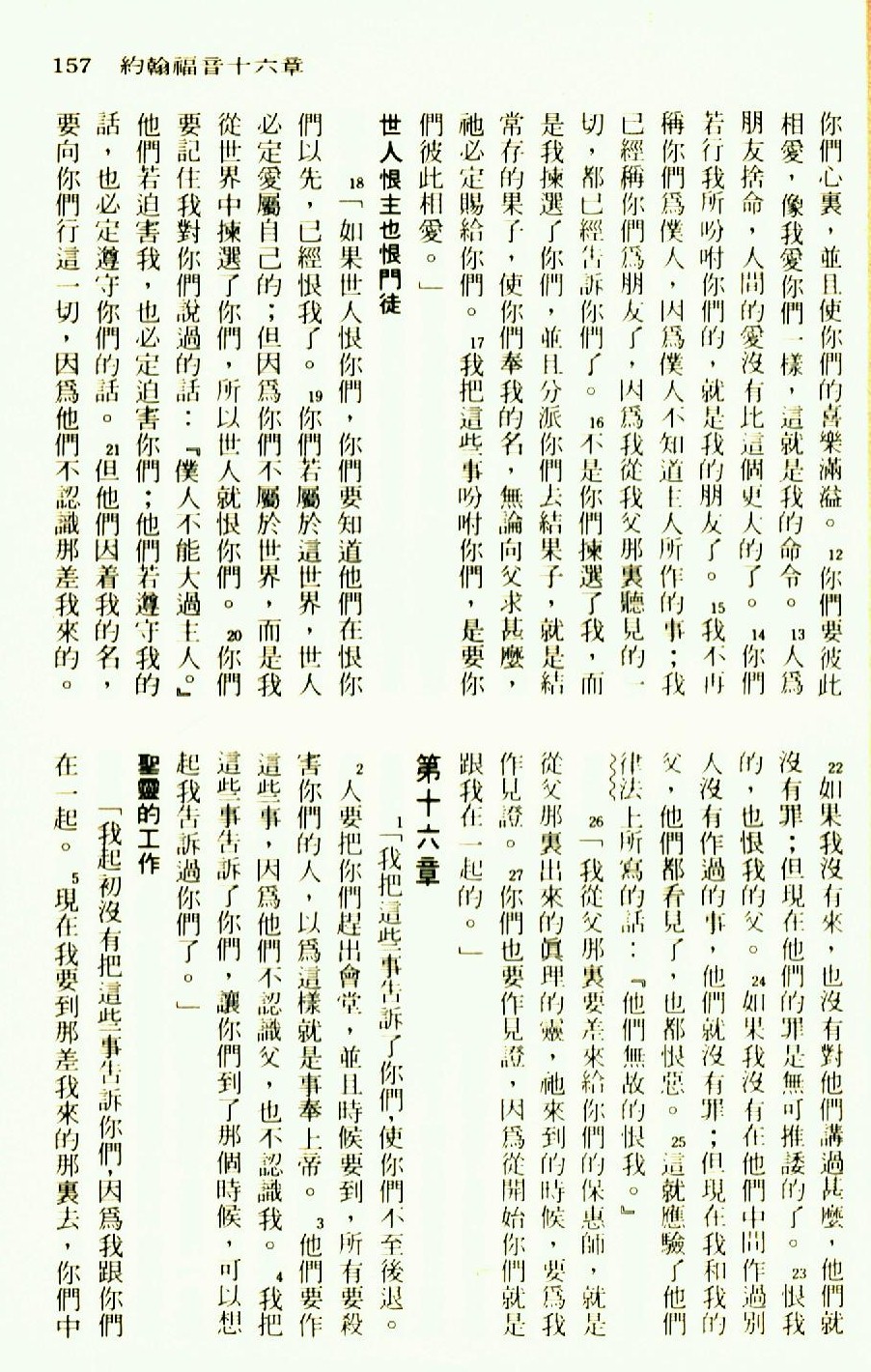 1976年圣经新译本新约 约翰福音 15 章 12 节到 16 章 5 节
