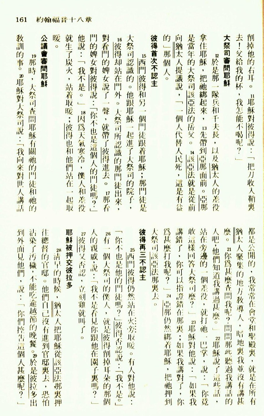 1976年圣经新译本新约 约翰福音 18 章 22 节到 18 章 29 节