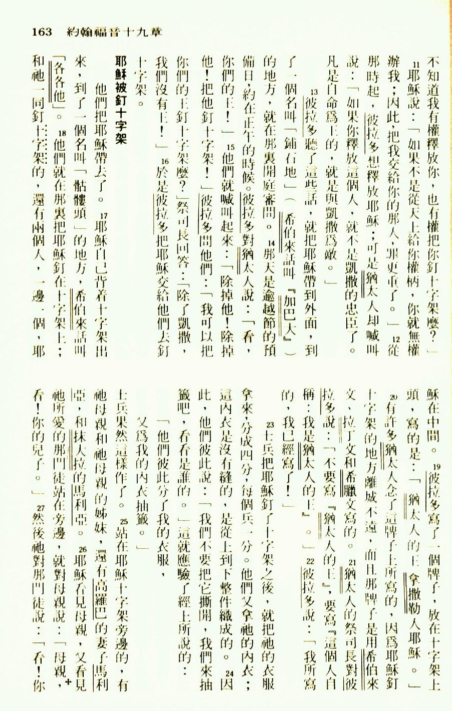 1976年圣经新译本新约 约翰福音 19 章 11 节到 19 章 27 节