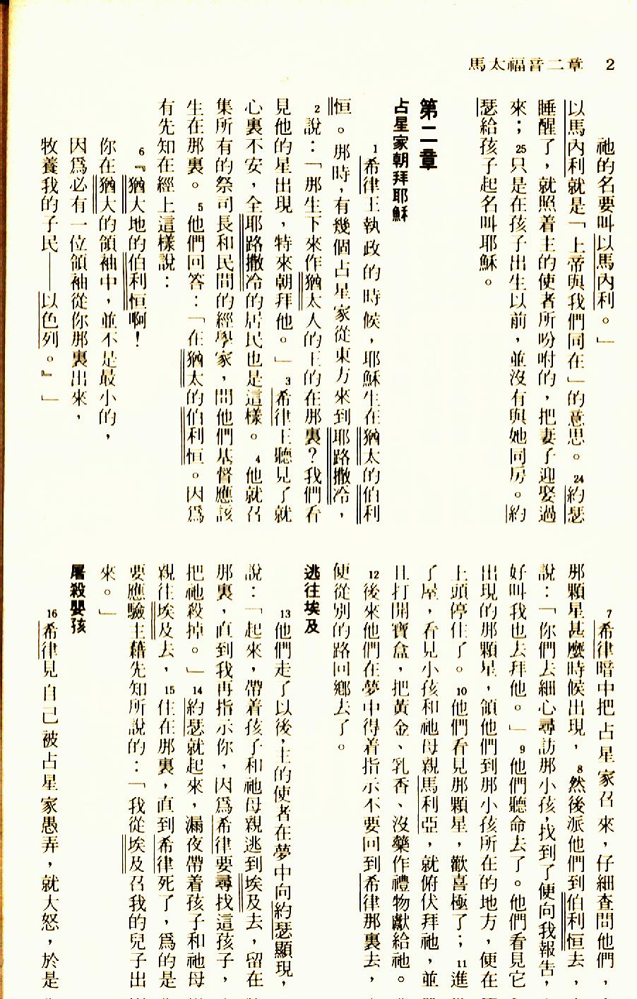 1976年圣经新译本新约 马太福音 1 章 24 节到 2 章 16 节