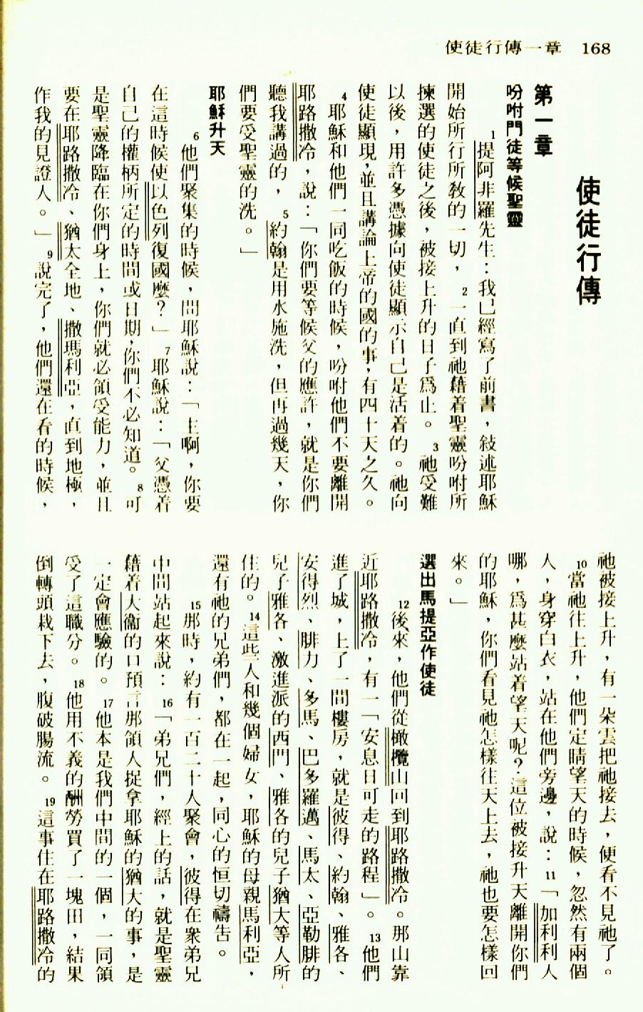 1976年圣经新译本新约 使徒行传 1 章 1 节到 1 章 19 节
