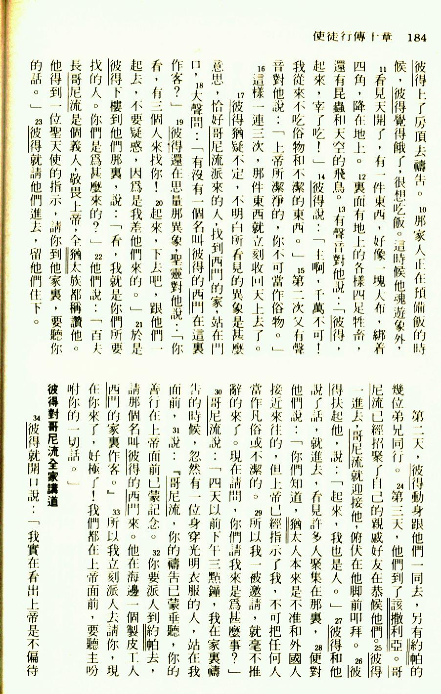 1976年圣经新译本新约 使徒行传 10 章 10 节到 10 章 34 节