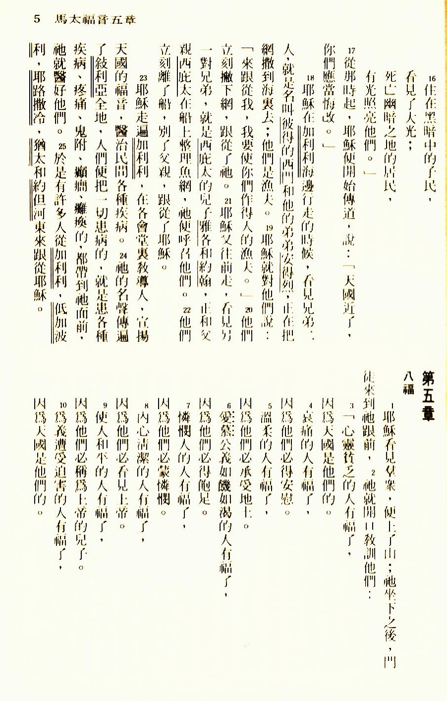 1976年圣经新译本新约 马太福音 4 章 16 节到 5 章 10 节
