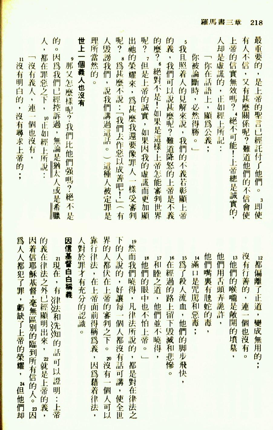 1976年圣经新译本新约 罗马书 3 章 3 节到 3 章 24 节