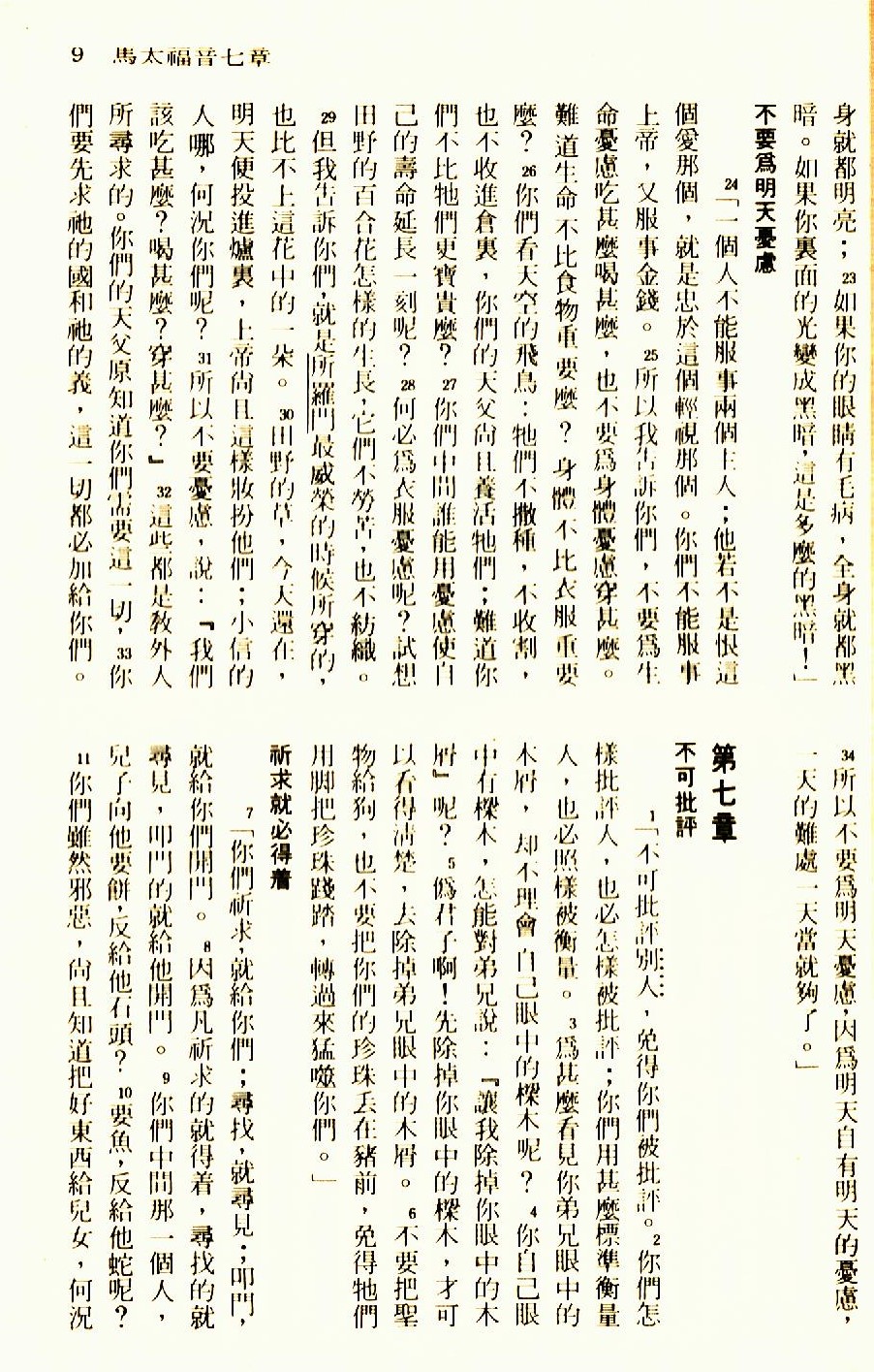 1976年圣经新译本新约 马太福音 6 章 23 节到 7 章 11 节