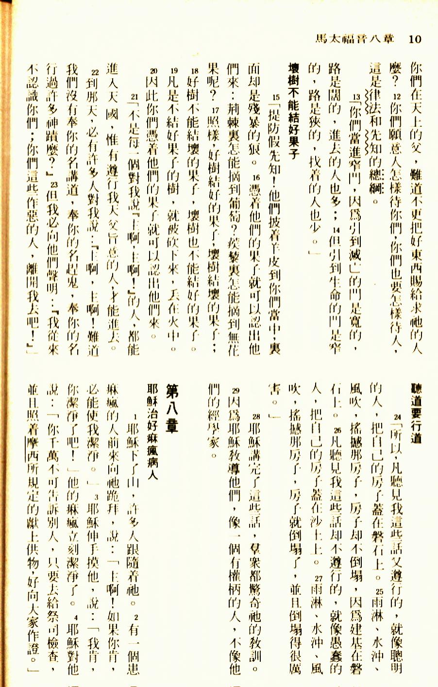 1976年圣经新译本新约 马太福音 7 章 12 节到 8 章 4 节