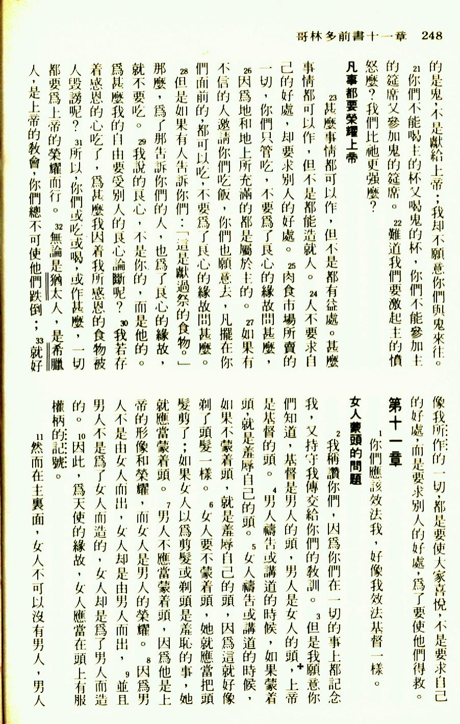 1976年圣经新译本新约 哥林多前书 10 章 21 节到 11 章 11 节