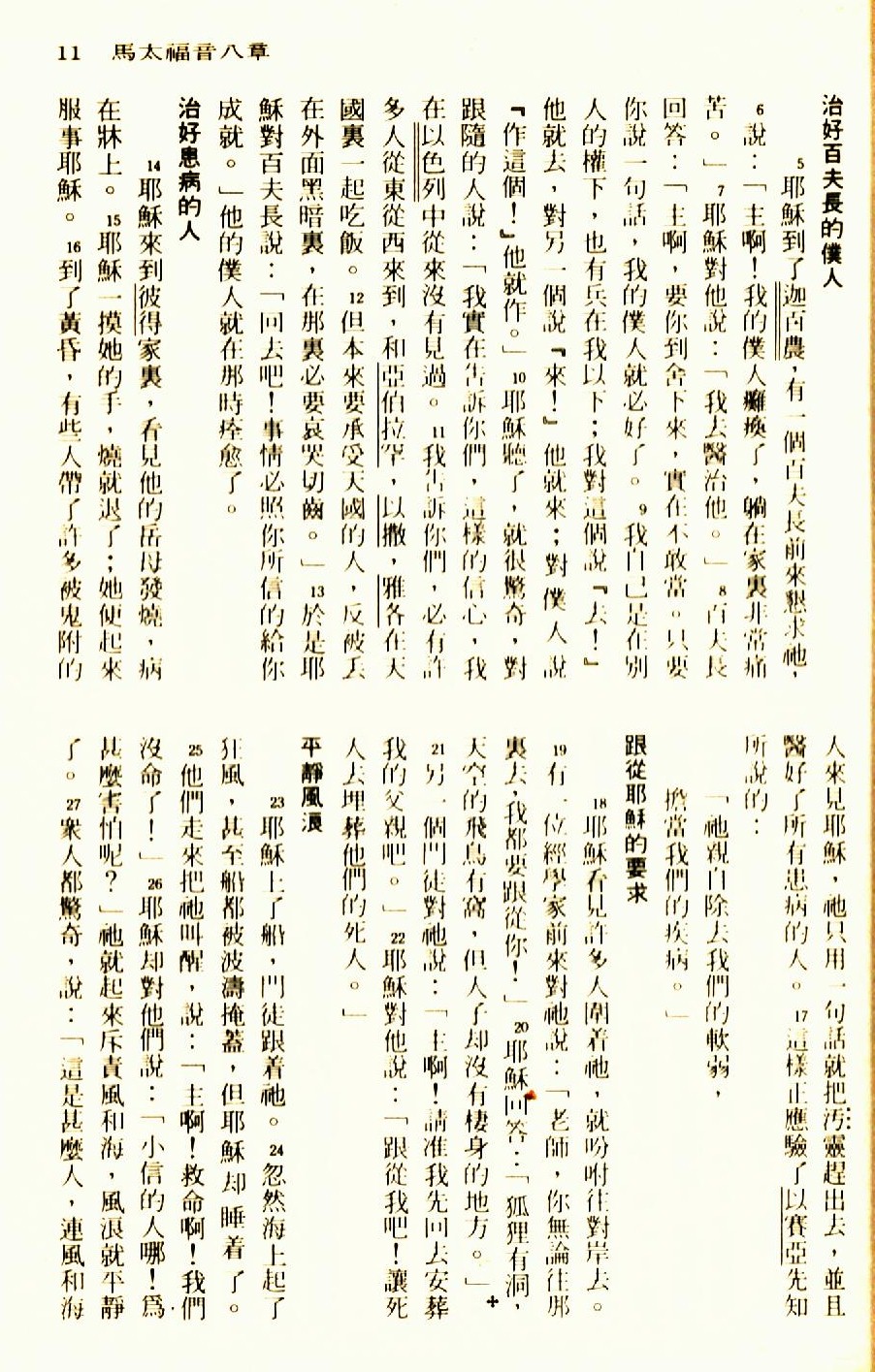 1976年圣经新译本新约 马太福音 8 章 5 节到 8 章 27 节