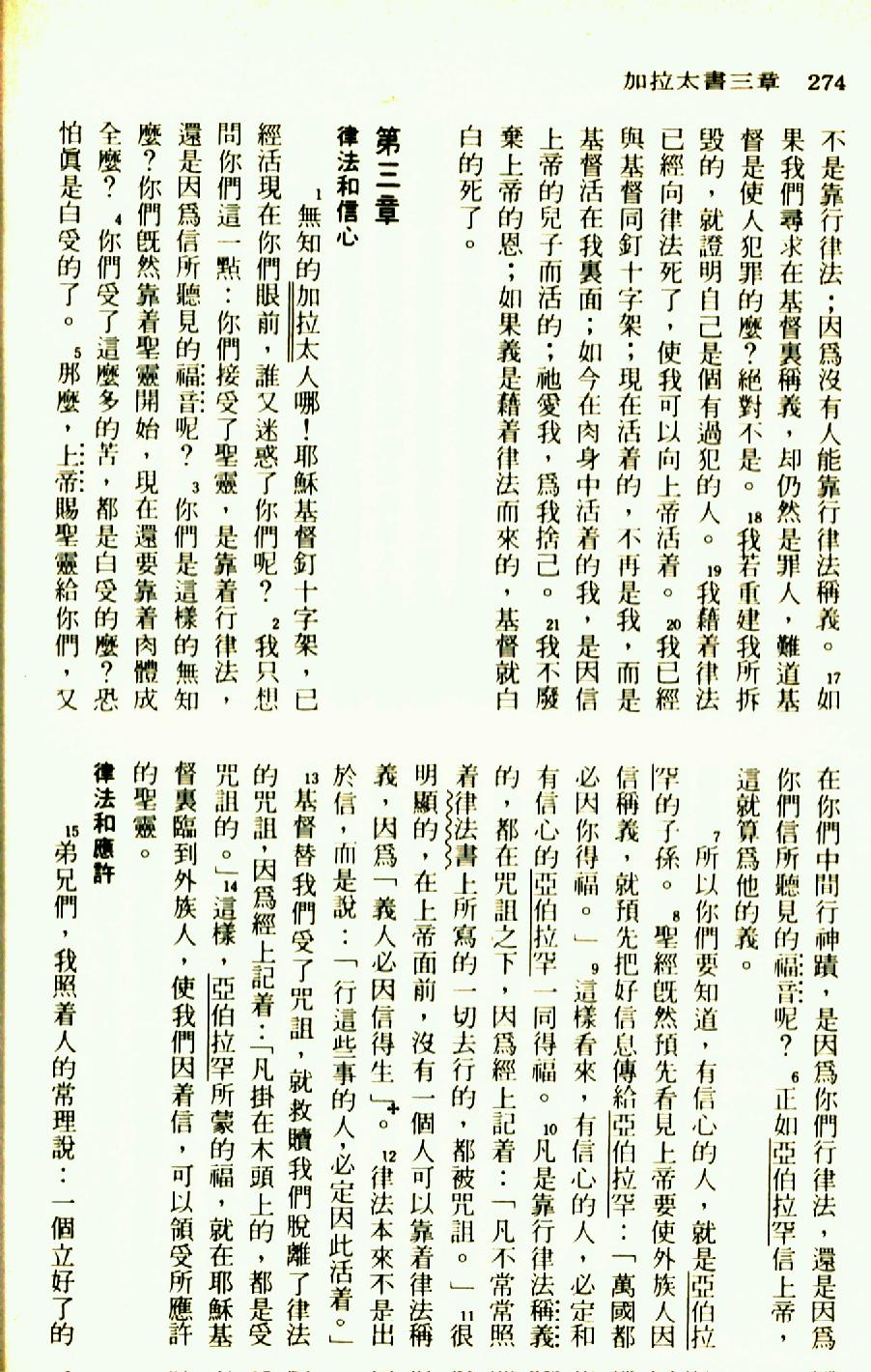 1976年圣经新译本新约 加拉太书 2 章 21 节到 3 章 15 节