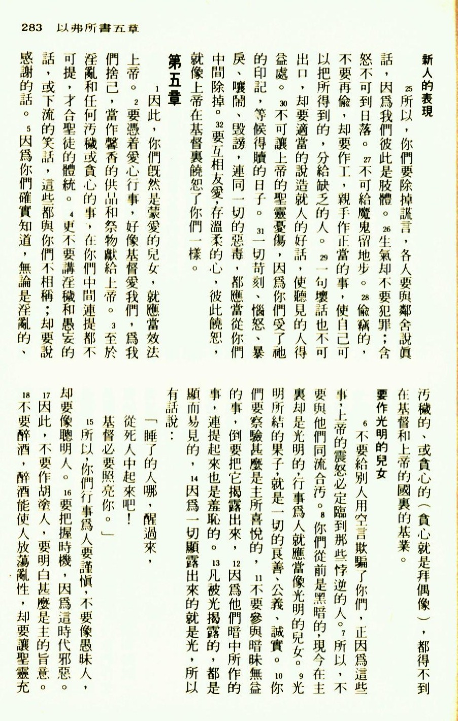 1976年圣经新译本新约 以弗所书 4 章 25 节到 5 章 18 节