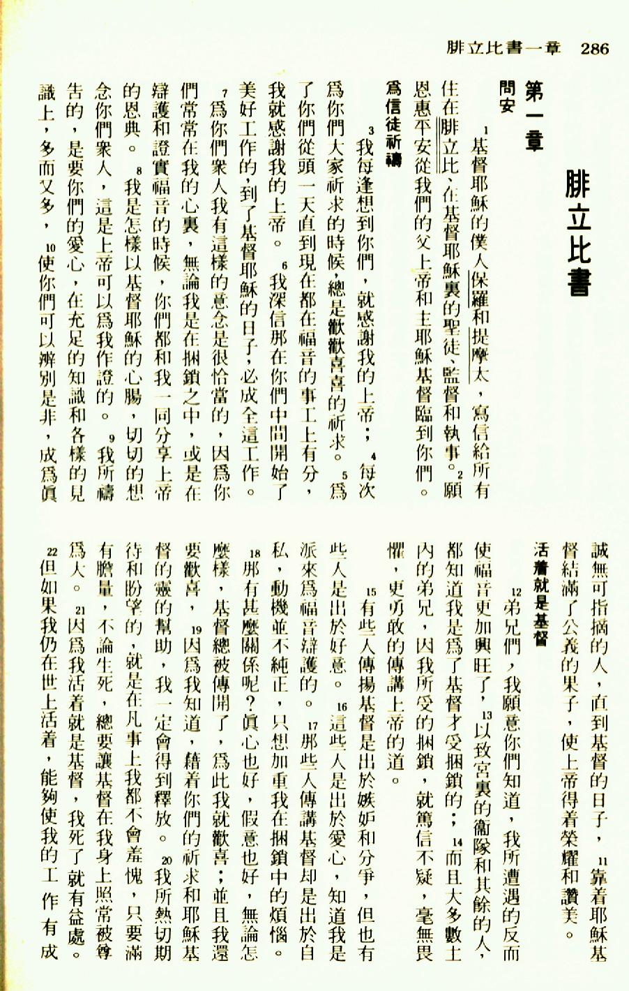 1976年圣经新译本新约 腓立比书 1 章 1 节到 1 章 22 节