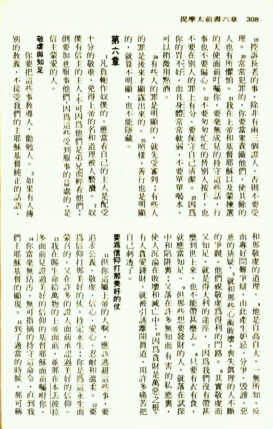 1976年圣经新译本新约 提摩太前书 5 章 19 节到 6 章 15 节