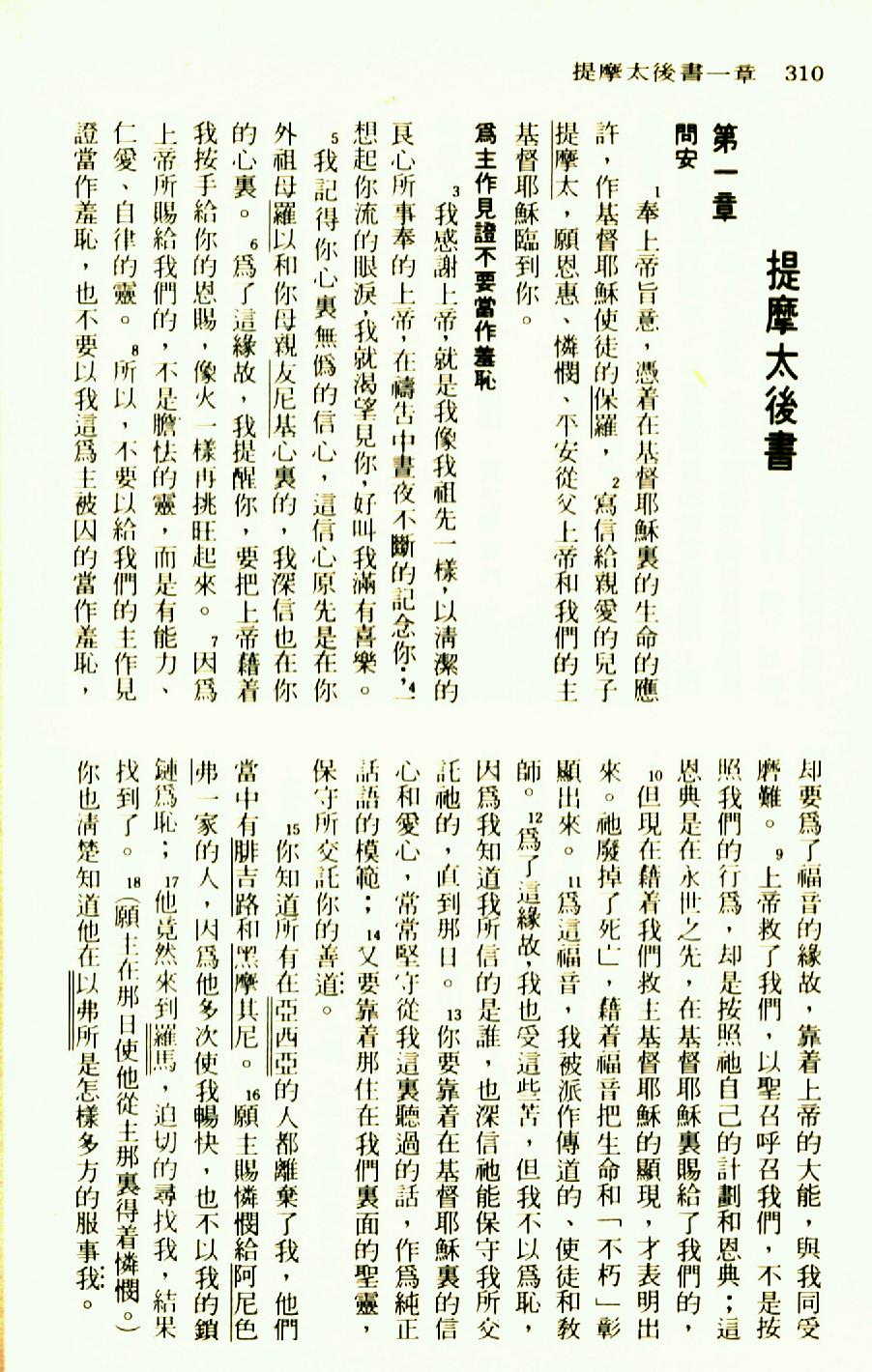 1976年圣经新译本新约 提摩太后书 1 章 1 节到 1 章 18 节