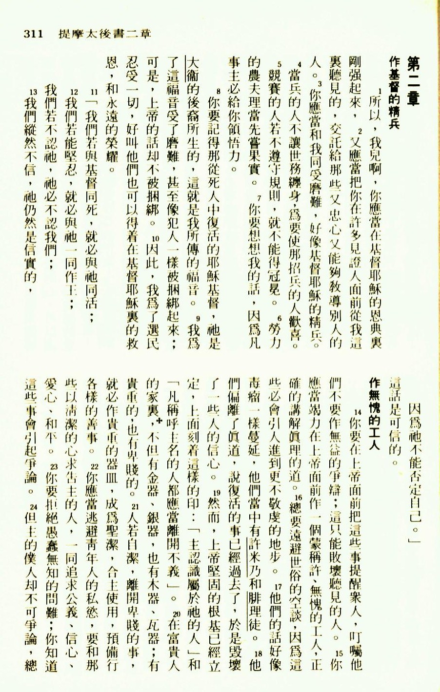 1976年圣经新译本新约 提摩太后书 2 章 1 节到 2 章 24 节