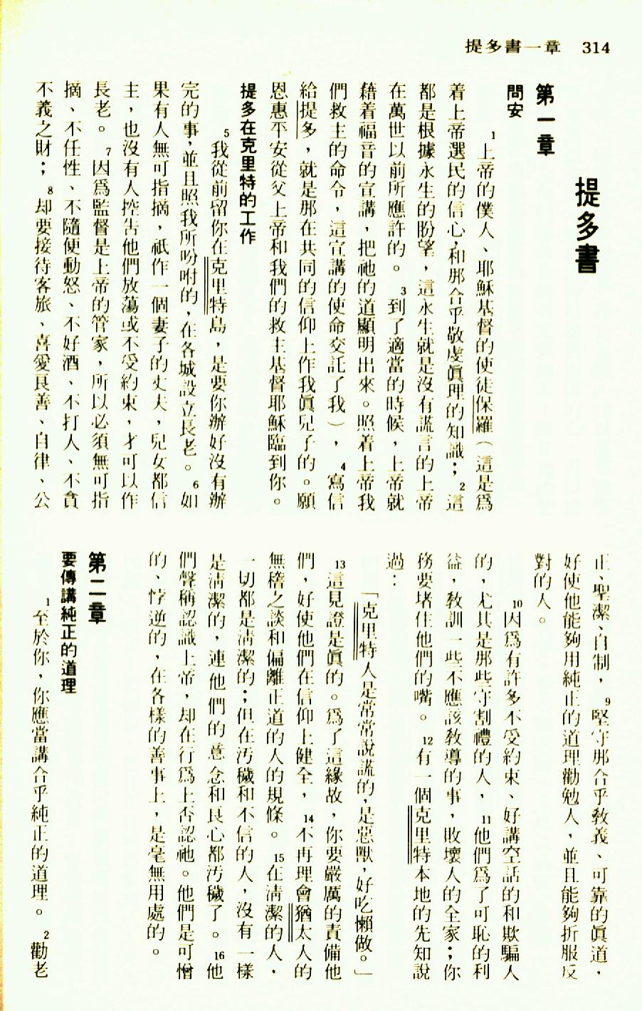 1976年圣经新译本新约 提多书 1 章 1 节到 2 章 2 节