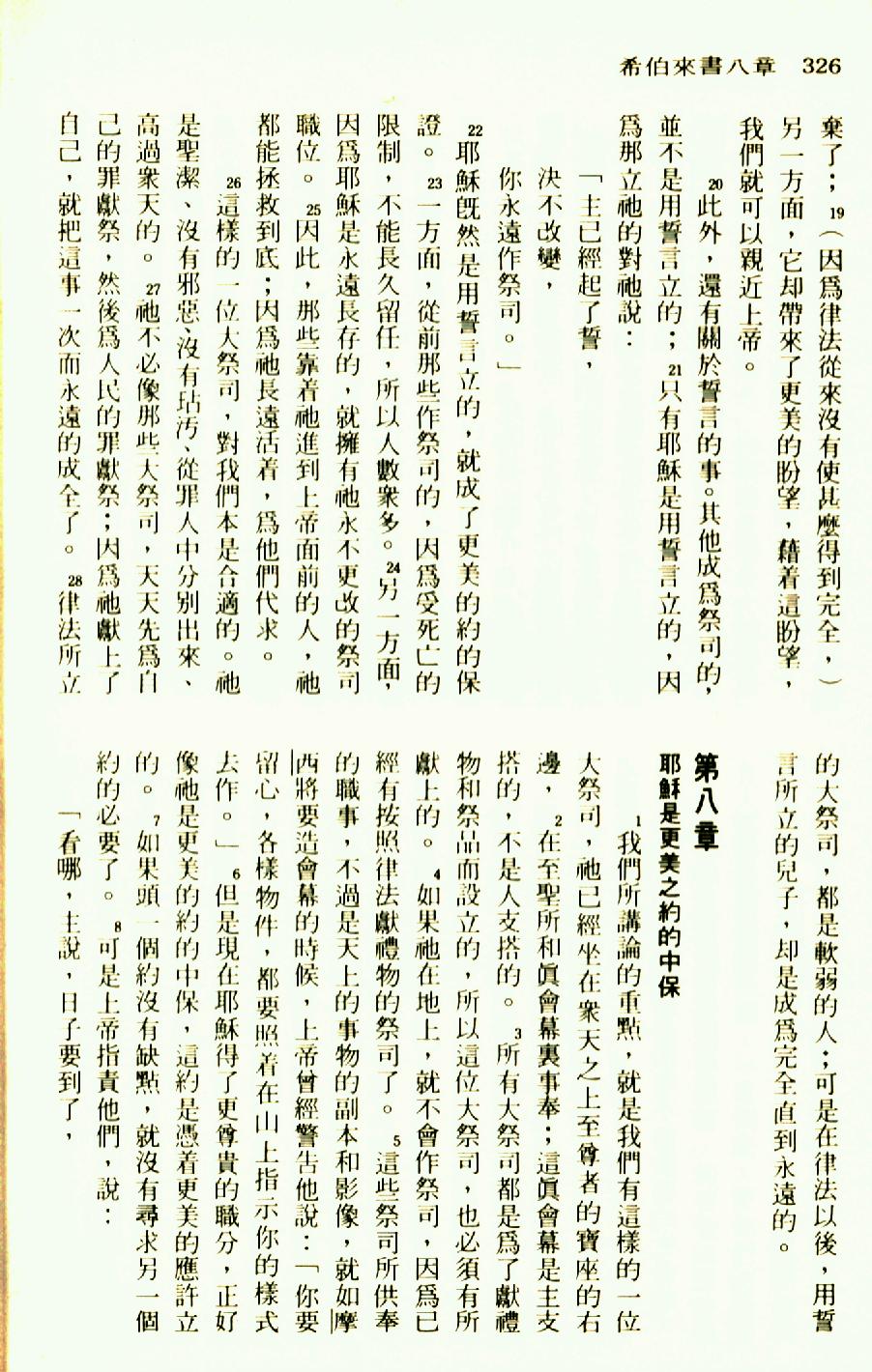 1976年圣经新译本新约 希伯来书 7 章 19 节到 8 章 8 节