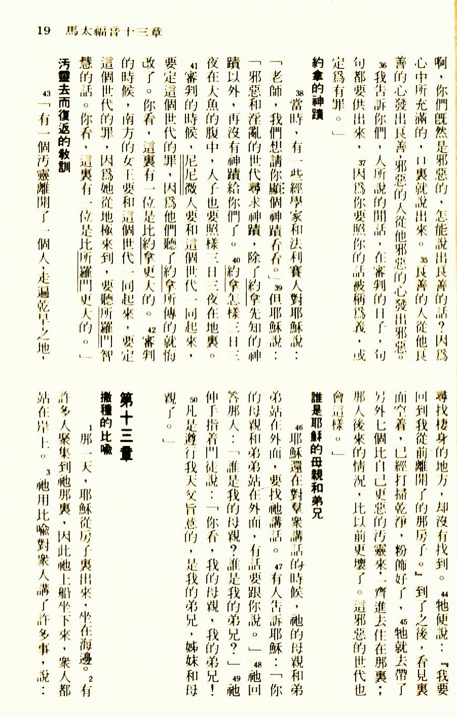 1976年圣经新译本新约 马太福音 12 章 35 节到 13 章 3 节