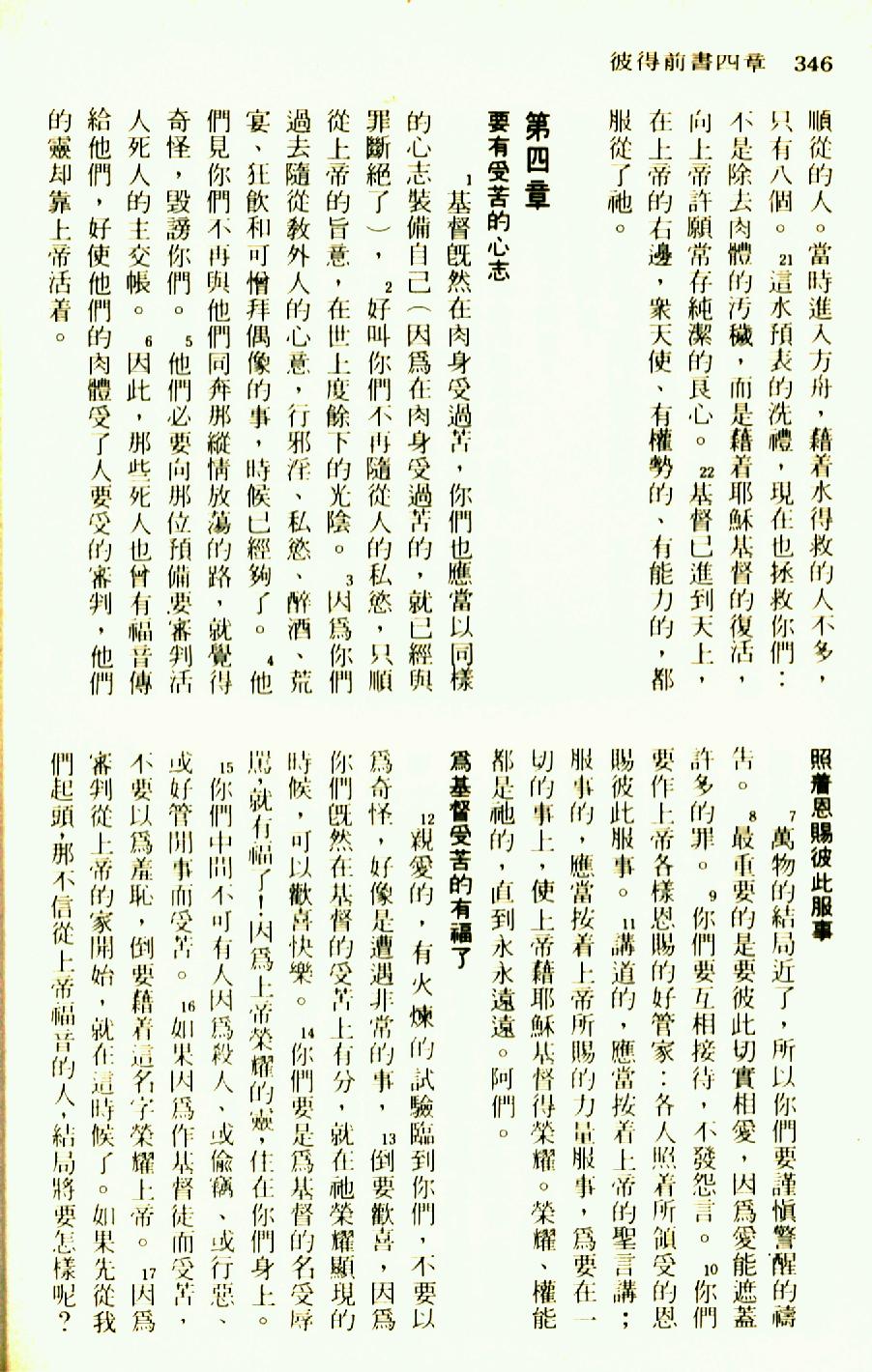 1976年圣经新译本新约 彼得前书 3 章 21 节到 4 章 17 节