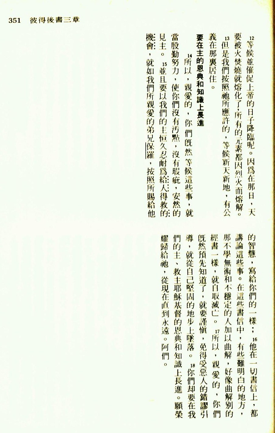 1976年圣经新译本新约 彼得后书 3 章 12 节到 3 章 18 节
