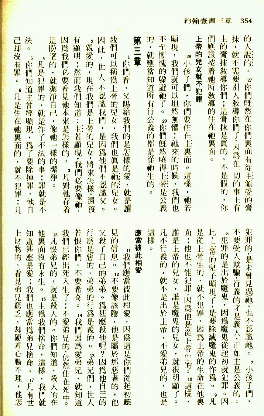 1976年圣经新译本新约 约翰一书 2 章 27 节到 3 章 17 节