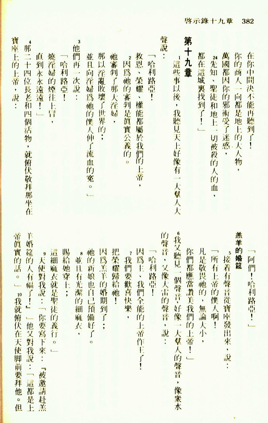 1976年圣经新译本新约 启示录 18 章 24 节到 19 章 10 节