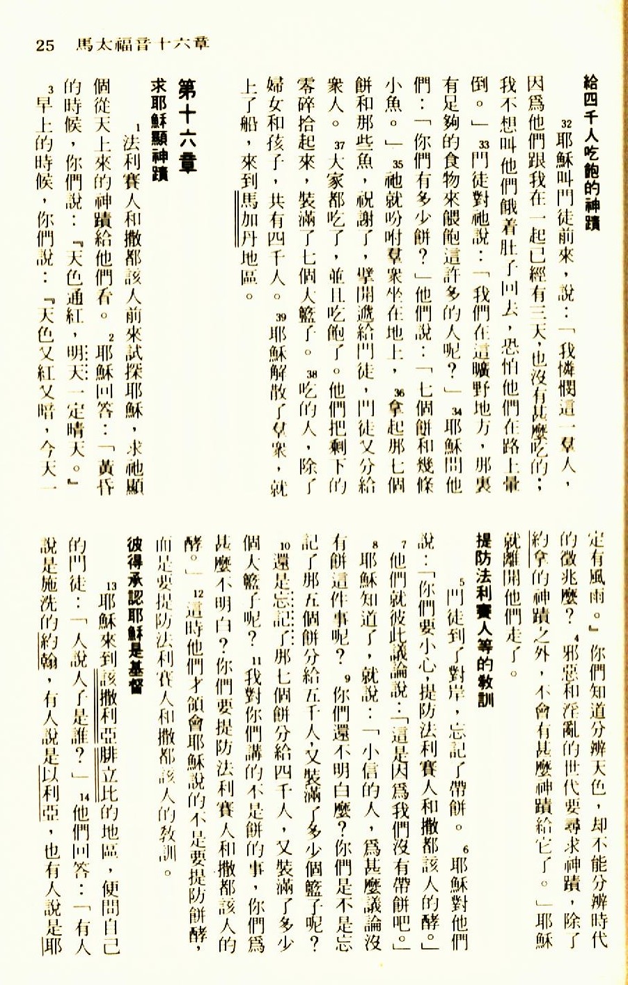 1976年圣经新译本新约 马太福音 15 章 32 节到 16 章 14 节