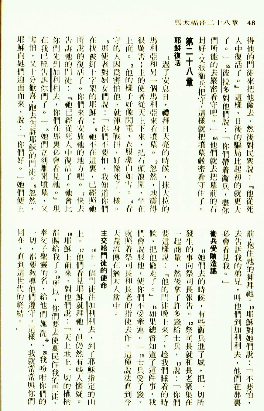 1976年圣经新译本新约 马太福音 27 章 65 节到 28 章 20 节